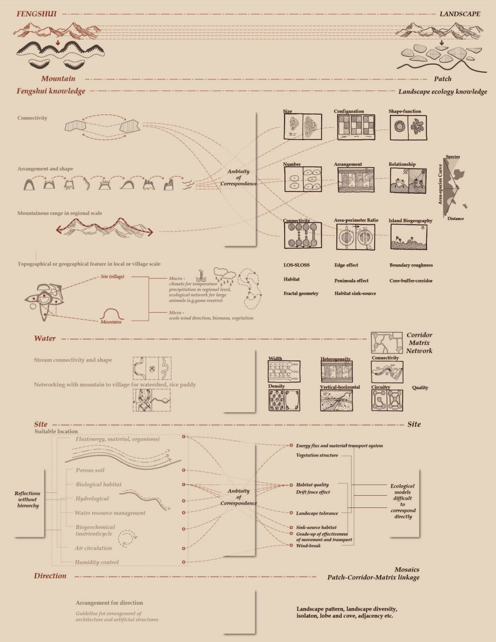 During its development, this interpretive system encountered numerous mismatches in the process of translation, leading to further additions and extensions. The construction of such a system is crucial for addressing a key dilemma: the gap exists not only between Feng Shui and landscape ecology, but also across a wide range of modern scientific disciplines. This raises the question of whether a specialised system is needed—including whether it is necessary to establish a dedicated epistemological and methodological framework for Feng Shui.
